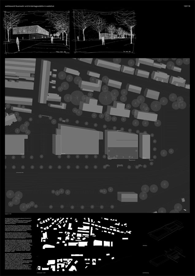 durch eine sorgfältige dem entwurfsansatz exakt nachfolgende realisierung, entstehen neue, den inhalten angemessene, unverwechselbare räume für die feuerwehr, die kinder der kindertagesstätte und der stadt waldshut.