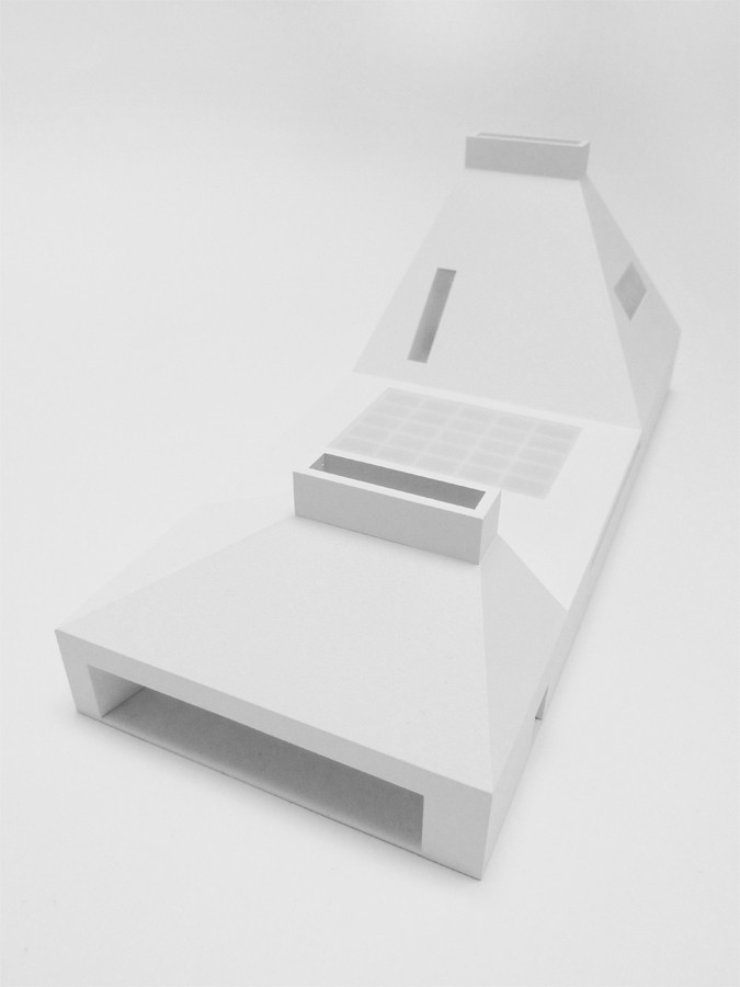 Das Gebäude soll in wirtschaftlicher Stahlbetonmassivbauweise mit einer hoch gedämmten Vorsatzschale mit an Dach und Wand weiß glasierten Dachziegeln entstehen. Die Dächer und Decken im Innenraum und im Vorbereich sollen weiß ausgeführt werden, Wandbekleidungen bis auf ca. 2,10 m und der Fussboden in hellem Eichenholz.