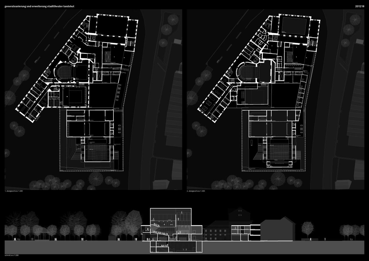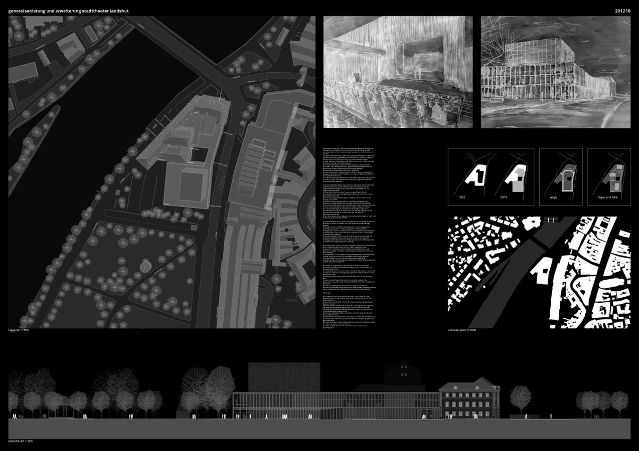 mit dem vorgeschlagenen konzept wird eine präzise idee für die generalsanierung und erweiterung des stadttheater landshut an diesem ort formuliert.