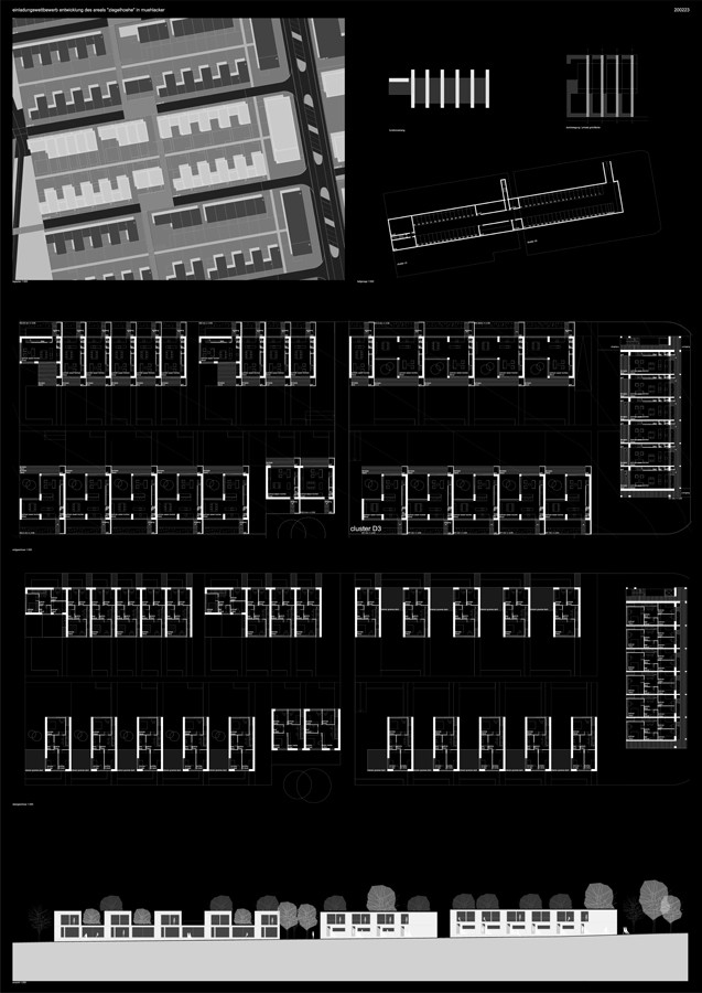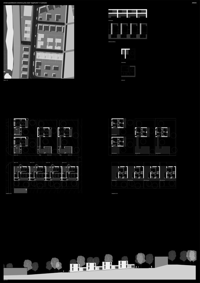 es werden verschiedene wohnformen entwickelt, die jeweils die wichtigen bereiche bauwerk, gefaeß, übergang haus zum freiraum, ankommen am haus, ankommen im haus, innere qualitaeten, freies wohnen, in verschieden großen wohnmoeglichkeiten, horizontal und vertikal aufzeigen.