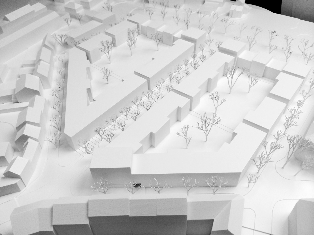 das wohngebiet paradies in konstanz wird durch die 3-4 geschossigen hochwertigen gründerzeitbebauungen meist als blockrandbebauungen geprägt. die neue wohnstruktur des "doebele" nimmt diesen ansatz auf gliedert das grundstück in zwei blockbebauungen die in sich jeweils unterschiedliche teilungen und höhenentwicklungen aufnehmen. in der achse zum blickpunkt des münsters von konstanz entsteht ein breiter mit bäumen gesäumter boulevard mit läden cafes und restaurants der den direkten anschluss zur oberen laube ermöglicht und eine städtebauliche entwicklung über die heutige grenze in die schweiz perspektiert. die viergeschossige bebauung des boulevard wird mit zwei fünfgeschossigen bauwerken zur grenzbachtrasse und einem sechsgeschossigen turmhaus zum nördlichen stadtanschluss definiert. in der anlieger/doebelestraße findet das quartierszentrum mit möglichkeiten/treffpunkt für vorträge kurse ausstellungen kiosk… seinen platz.