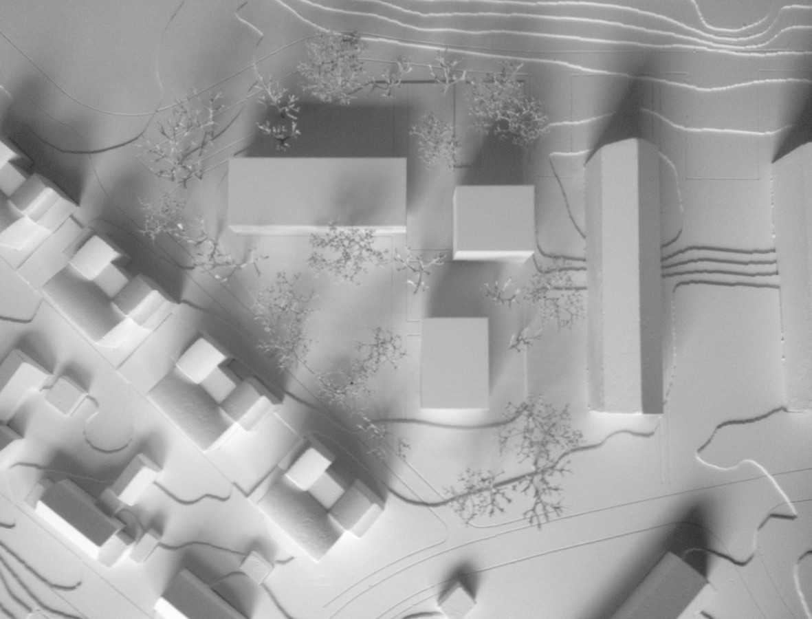 die umgebungsbebauungen des zu beplanenden grundstücks werden von unterschiedlichen städtebaulichen baustrukturen und ansätzen des wohnungsbaus der vergangenen jahrzehnte geprägt. parallel gestellte wohnungsstrukturstangen und die ansätze, wohnungsbau in kleinmaßstäbliche gebäudeteile aufzulösen, wechseln sich ab. der ort der neubebauung zwischen kuhmoosweg und danzigerstraße in konstanz zeichnet sich durch eine große, inselartige parkfläche mit großbäumen aus. die zu bebauende fläche grenzt sich zu den nachbarflächen ab, bietet eine angenehme massivität von grün und ist ein wunderbarer aufenthaltsort für menschen und kleintiere. der städtebauliche ansatz folgt der parkidee und stellt drei neue gebäude, die kindertagesstätte und zwei wohnungsgebäude, so in den park hinein, dass diese von den vorhandenen baumriesen ummantelt werden können und sich zurückhaltend dezent präsentieren. die kindertagesstätte wird in modularem holzrahmenbau über alle geschosse in einem durchlaufenden raster konstruiert, mit verglasungen und umlaufenden vertikalen holzstrukturen (schiebeelemente) mit rundstäben, analog zu den vorherrschenden baumstrukturen, umhüllt. im gesamten gebäude sind die holzmaterialien sichtbar und geben dem haus eine geborgenheit im gebäude und im park. die wohnungsgebäude werden in stahlbeton konstruiert, mit verglasungen mit umlaufenden vertikalen, filigranen gitterroststrukturen (schiebeelemente) aus ökologischem recyclingaluminium bronze eloxiert umhüllt. durch zwei in ihrer anmutung ähnliche und im detail unterschiedliche fassaden werden die nutzungen lesbar, die baukörper bleiben durch ihre geschosshohen schiebeelemente vielfältig und werden sich in die parklandschaft eingruppieren, ohne an selbstständigkeit zu verlieren. um die der baumlandschaft widersprechende horizontalität zu vermeiden, werden die baukörper in verschiedenen höhen und somit verschiedenen geschossigkeiten entworfen. die III, IV und V geschossigen bausteine bleiben unterhalb der traufkante der nachbarbebauung und bilden aus der höhenentwicklung einen städebaulichen abschluss, vom geschosswohnen der 50er und 60er jahre zum westlichen landschaftsraum.