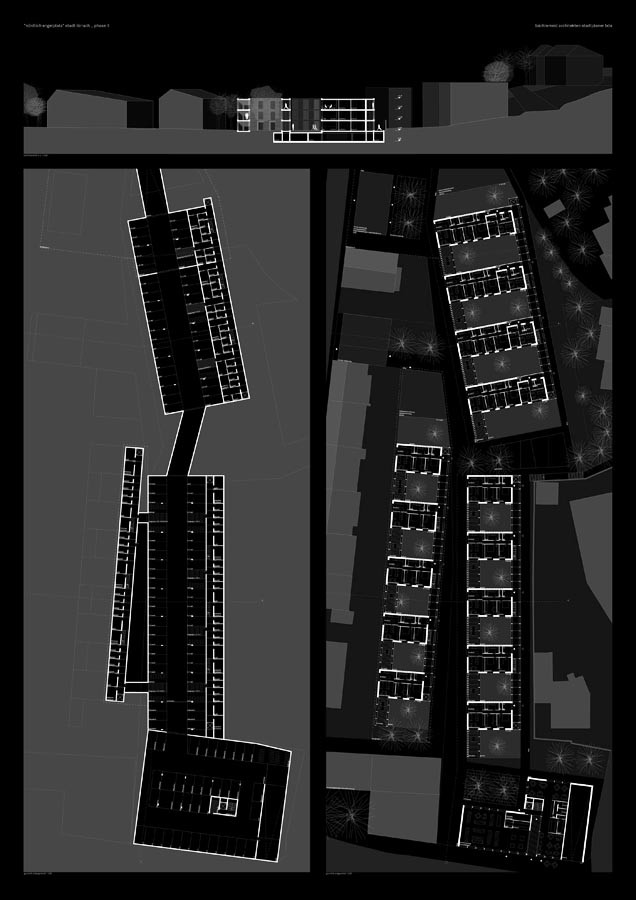 die innenhofbebauungen sind ausschließlich den wohnnutzungen vorbehalten, es werden erschießungen durch begrünte laubengänge, als auch konventionelle erschließungen vorgeschlagen.